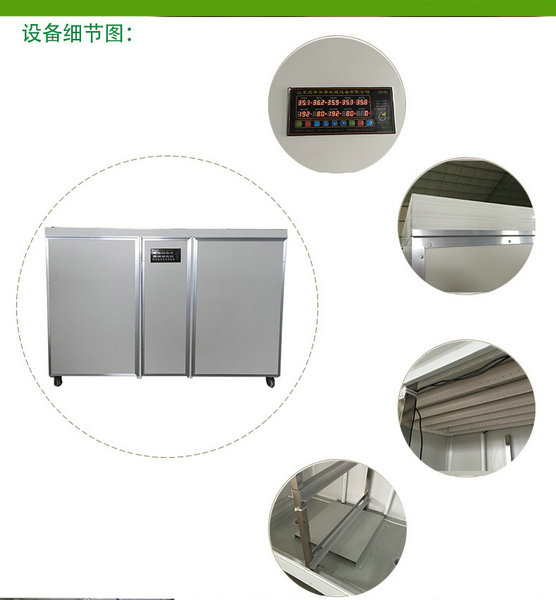 6、豆芽機結構特點及功能(可根據客戶需要訂做): 1)機器使用不銹鋼、鋁合金框架,箱體為保溫、防水、防銹的復合彩鋼板,設計合理。全新升級改進的水箱為不銹鋼或PVC塑板制作而成,使用壽命長且具有節水、低電耗等特點。 2)使用獨立電控,整體可實現全自動化,能提供豆芽生長的適宜環境和條件,無需專人看管,具有省時省力的特點; 可實現多箱體分體控制、箱體內溫度顯示、高溫報警、水箱自動加水、自動加溫、自動淋水,高溫強制淋水、淋水間隔時間顯示、淋水延時顯示、手動淋水等功能。 3)可選臭氧消毒機,實現水箱、箱體及芽苗菜的的自動消毒滅菌功能。臭氧可以殺滅病毒、細菌和微生物,提供芽苗菜生長的安全空間,有效地減少豆芽生長過程中的爛芽為問題。