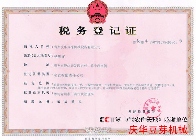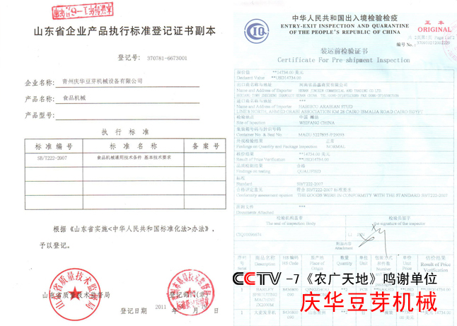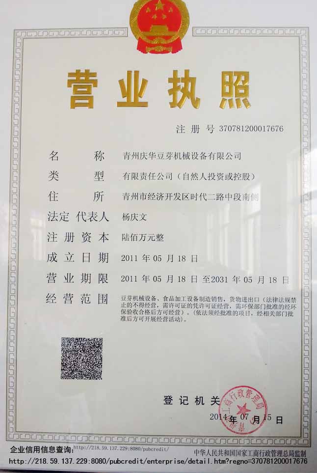 公司名稱:山東慶華豆芽機械設備有限公司 (原青州豆芽機械廠)